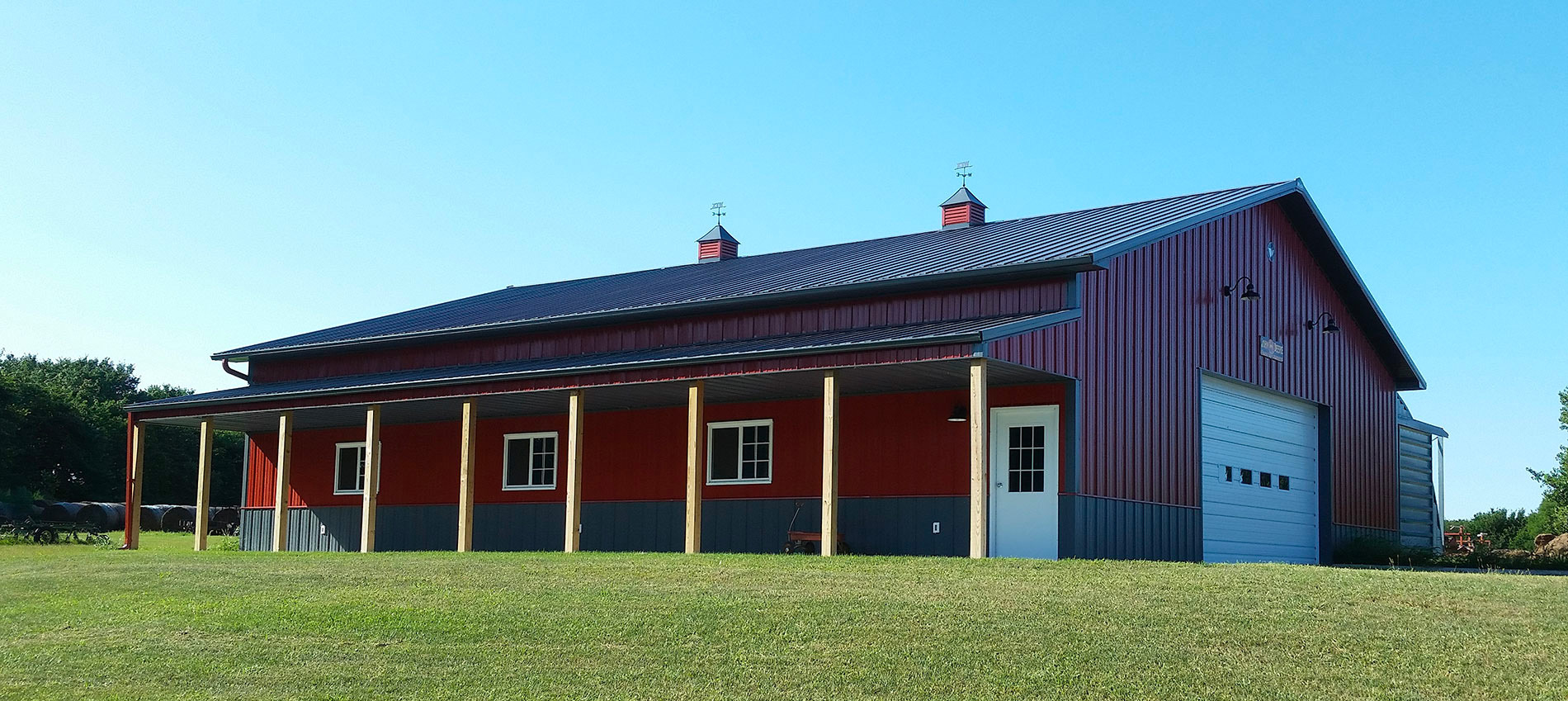 Many horse owners look for a horse barn with living quarters in which a structure is attached to an arena or stable that has home-type rooms. The types of living quarters will largely be dependent on the building code, but we can build all the features of a classic home, including a living room, kitchen, bedrooms and bathrooms.